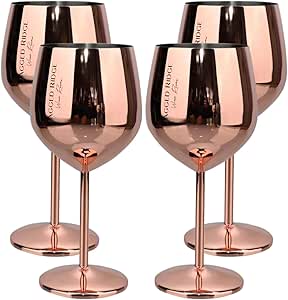Jagged Ridge Wine Rooms Rose Gold Stem Stainless Steel Wine Glass - Crafted for All Wine Enthusiasts - Set of 4